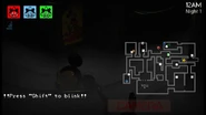 A camera flashlight was also planned in a similar fashion to Five Nights at Freddy's 2. This was scrapped extremely early in development and was never implemented into any camera besides the Lounge.