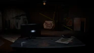 A character simply named "PHChar3" was a placeholder character. PHChar3 would have shown up on the inside of the computer on the desk. Clicking the button below the screen on the monitor simply gets rid of him. PHChar3's jumpscare was a desaturated version of what appears to be an early version of a Classic Photo-Negative Mickey jumpscare.